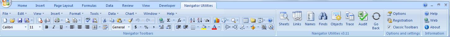 Navigator Excel Toolbar is included as part of Navigator utilities